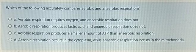 Solved Which Of The Following Accurately Compares Aerobic Chegg Com